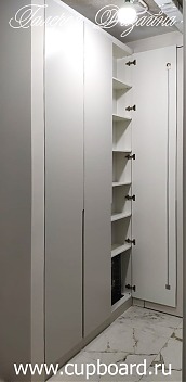 Данный вариант призван максимально рационально использовать все доступное пространство. Углы, как правило, не заняты ничем полезным. Угловые прихожие на заказ позволяют это исправить. Они удобно размещаются в самых неудобных местах, позволяя аккуратно укладывать вещи и обувь.