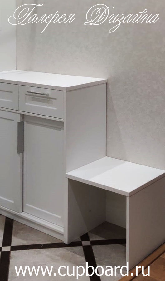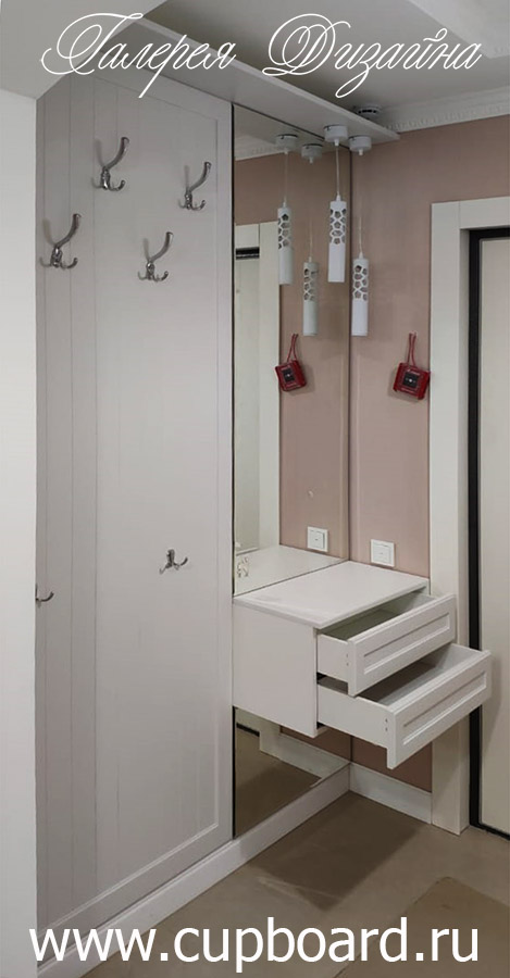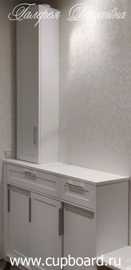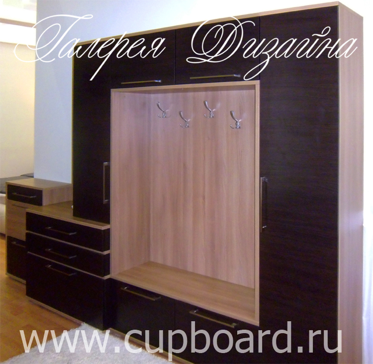 Это единичный элемент мебели, который может использоваться как в комплексе со шкафами, так и отдельно. Прихожие на заказ для маленькой прихожей могут вообще состоять только из тумбы и открытой вешалки с крючками под верхнюю одежду. Остальную одежду можно хранить и в жилых комнатах, но вот сезонной обуви там точно не место.
