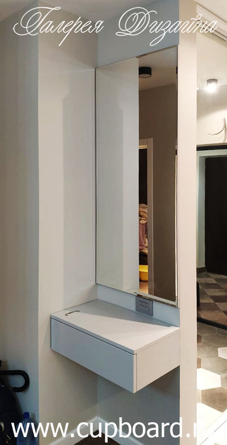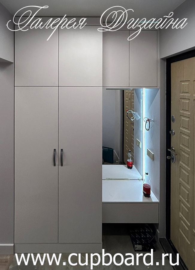 Во многих случаях, малогабаритные прихожие на заказ делаются в коридор именно в виде угловой мебели. Кстати, подбирая прихожие на заказ для маленького коридора, обратите внимание на использование зеркальных дверей. Они визуально расширяют пространство, и помещение воспринимается более просторным.